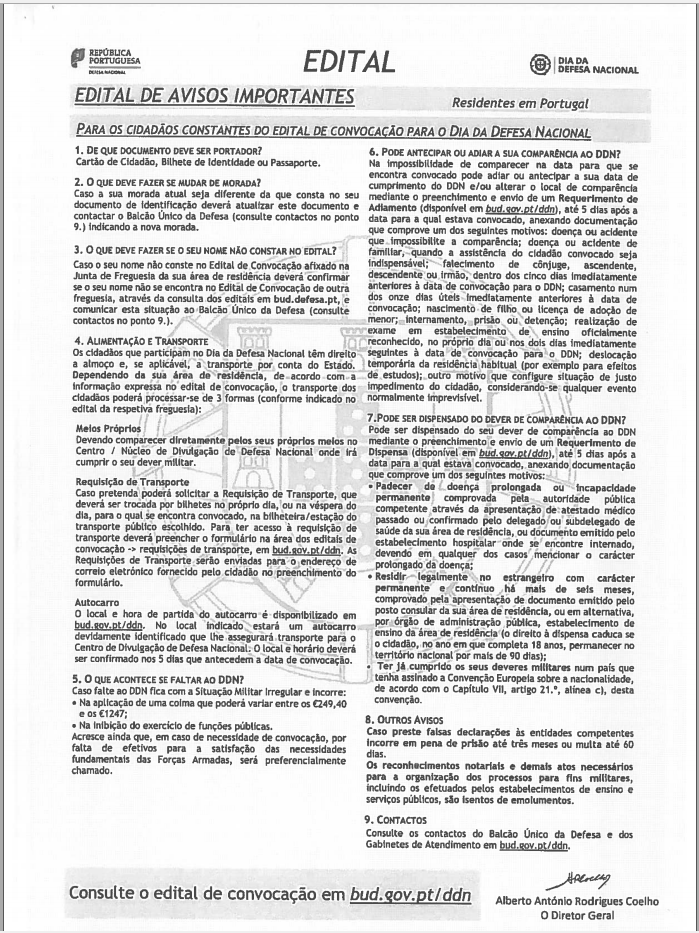 Para mais informações consulte os contactos do Balcão Único da Defesa e dos Gabinetes de Atendimento em bud.defesa.pt