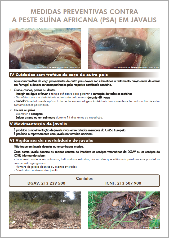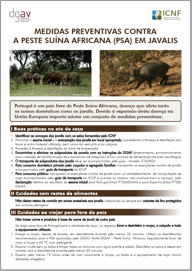 Medidas Preventivas Contra a Peste Suína Africana - Cartaz para Caçadores